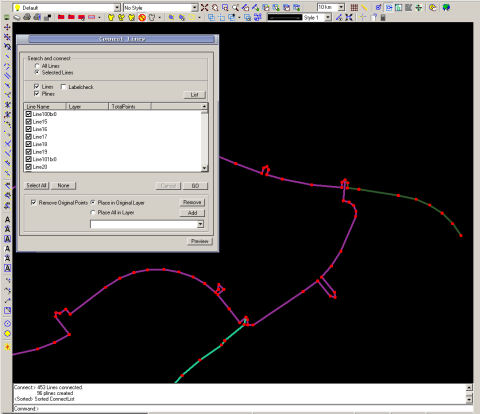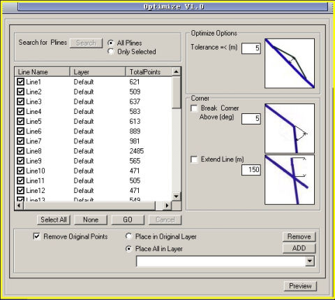 Tooling List: - Line Optimizer - Connecting Points - Connecting Lines - Pline, Line Draw - Offset - Create Area - Duplicate Search - Double Points Search - Snap Radius - Offset Buffer - Explode Lines - Extend - Close Pline - Line Interpolation - Line Intersection - Convert Corridor - Angle - Line Distance Inside Area - Line Area Intersect - Point Radiusa - Sort Line Labels - Change Line Labels - Waypoints - BlockArea Line Generate - CorridorArea Line Generate - non-Georeferenced images Import